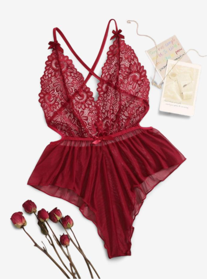 Sheerness & Coverage: Semi-sheer overall. Lace panels cover the bust strategically, while the mesh provides minimal coverage over hips and stomach. Designed to tease and allure.