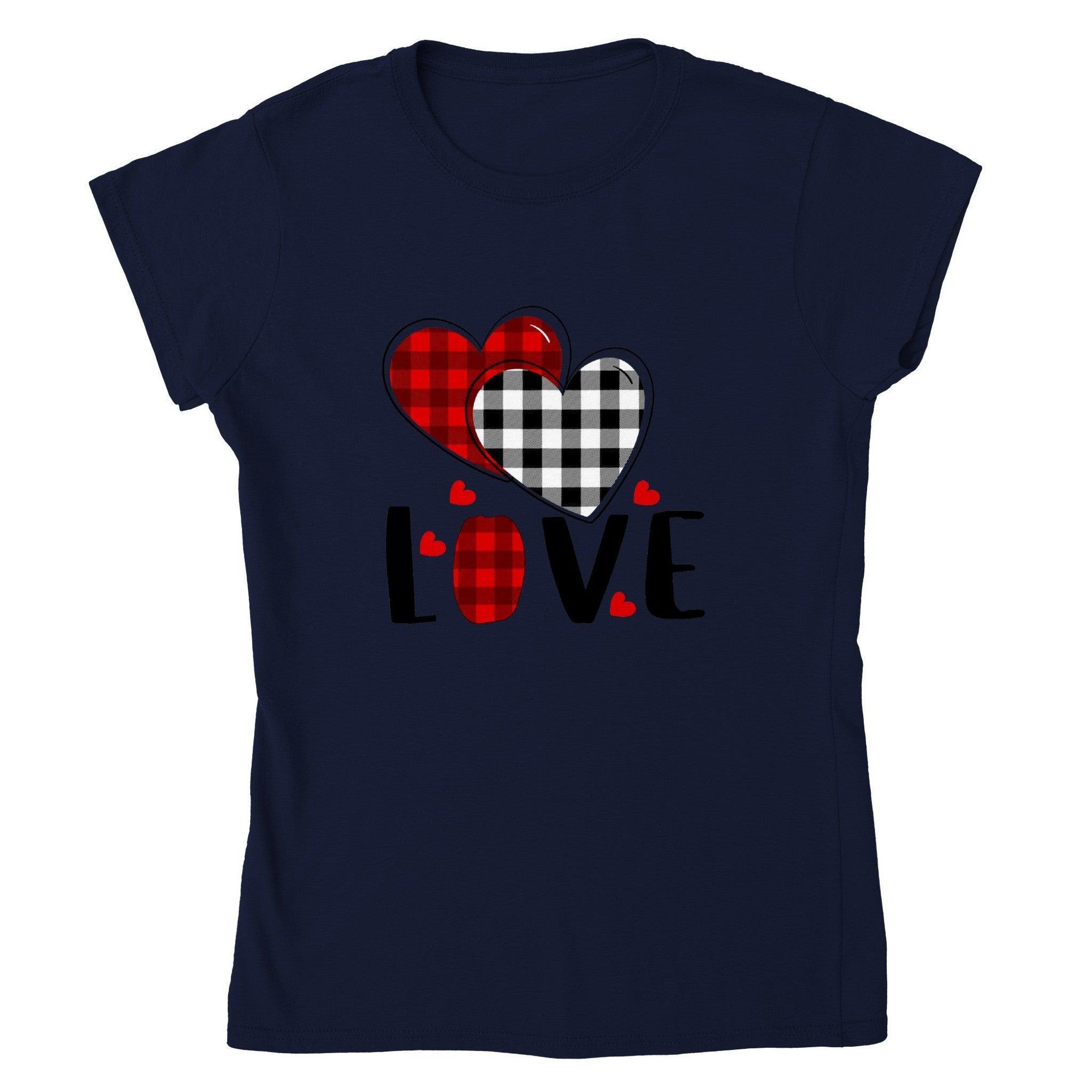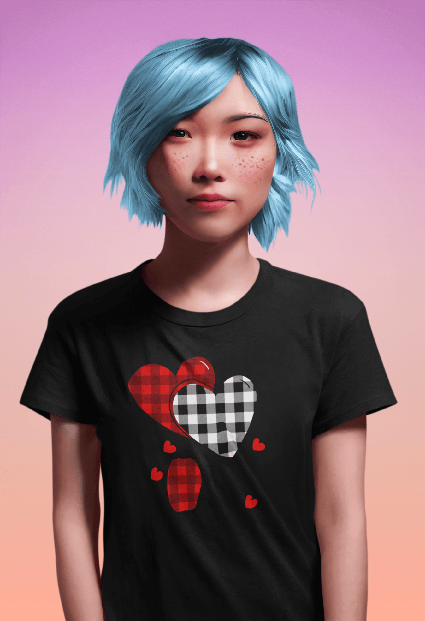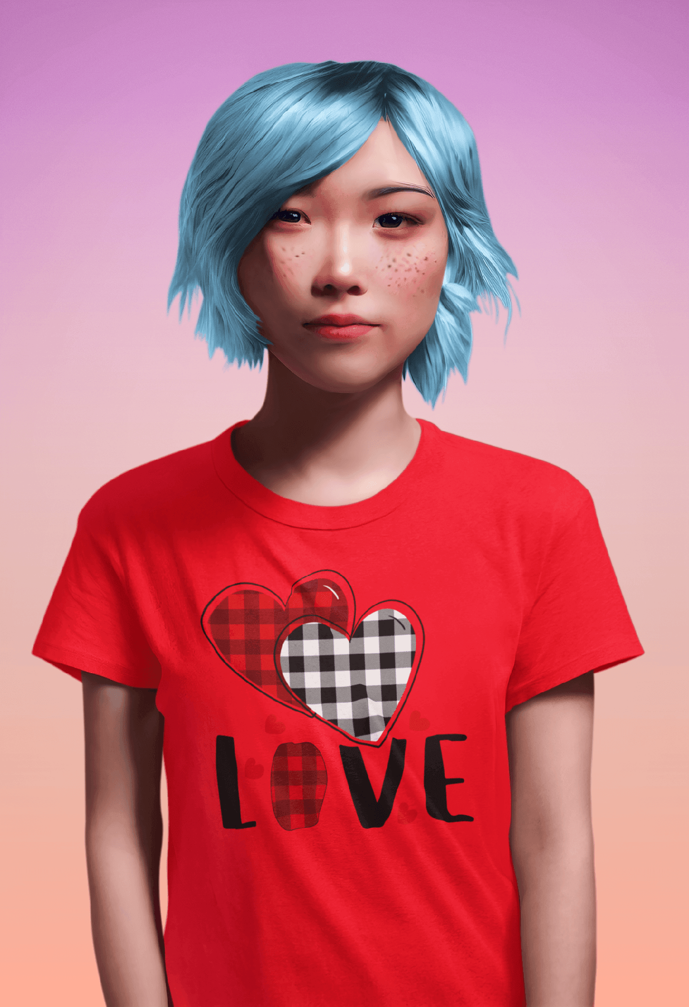 Bring on the flannel feels with the Buffalo Plaid Love Hearts Tee. Featuring two plaid-print hearts and bold block letters spelling out “LOVE,” this shirt is Valentine’s Day cuteness with a rustic twist. Red and black, white and grey — it’s giving lumberjack and lovebird. Whether you're cuddling up fireside or hitting brunch with your girls, this tee brings a warm, woodsy charm that never goes out of style.