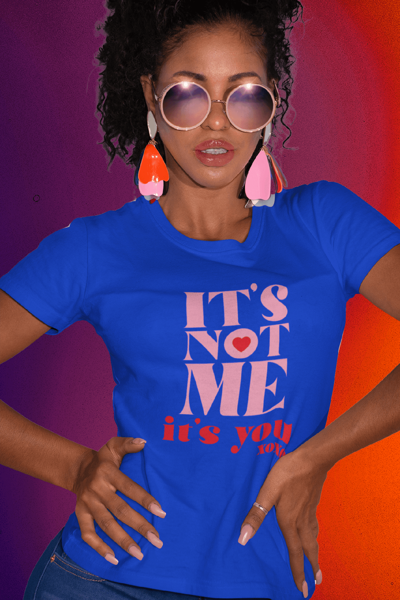 Serving sass and sweetness in one cheeky little package, the "It’s Not Me, It’s You XOXO Tee" is your official breakup-with-basic energy top. With bold pink and red typography that screams romantic Valentine’s Day shirt, this tee is perfect for turning heads—and rolling eyes (lovingly, of course).