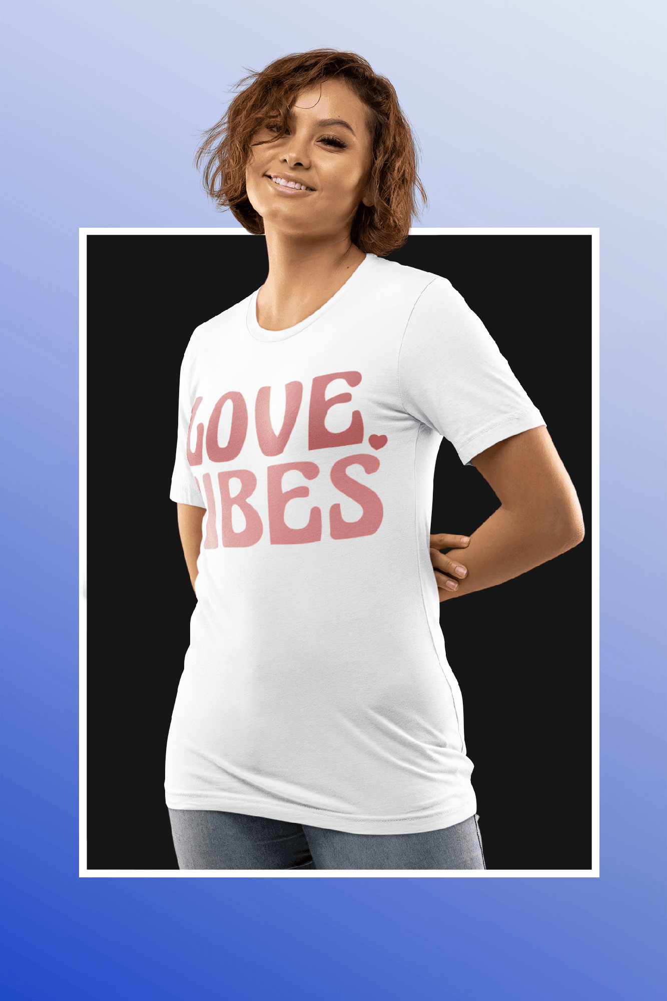 Style & Fit: Fall in love with the luxe feel of pre-shrunk jersey knit, tailored to hug your curves without clinging. Its side-seamed design delivers a flattering, feminine fit and a perfect canvas for that bold “Love Vibes” print. Pair with your favorite denim, a pastel pleated skirt, or layer under a denim jacket for an instant confidence boost.