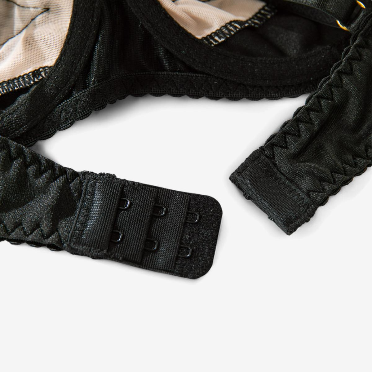 Closures & Adjustability: Adjustable bra straps, hook-and-eye back, and removable garter and leg straps allow a fully customized fit.