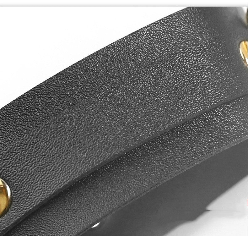Jet-black leather trimmed with gold hardware — sleek, commanding, unapologetically bold.
