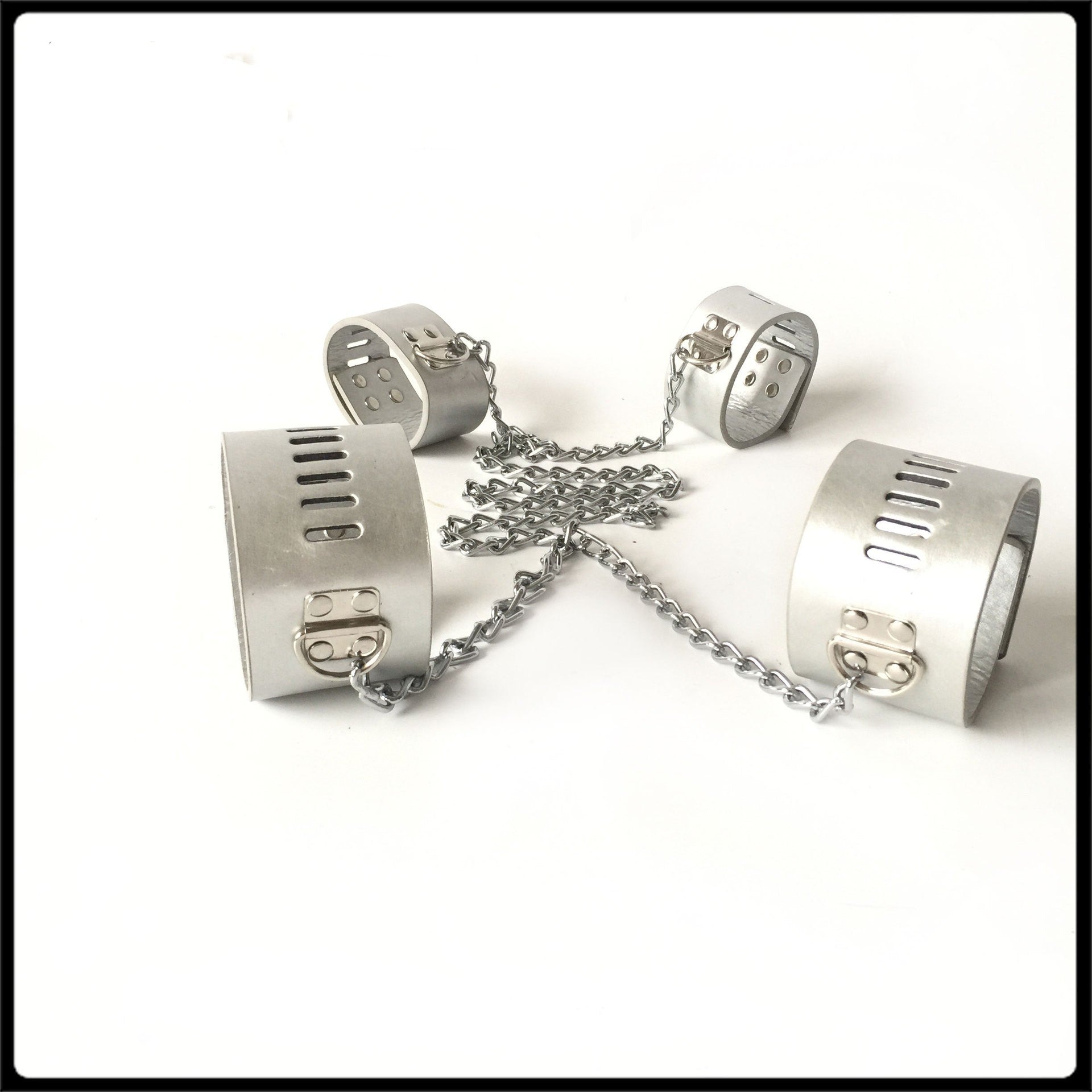 Unleash your passionate play with the Sensual Restraint Hand & Foot Cuffs, designed to bring both style and excitement to your most intimate moments. Expertly crafted from high-quality leather for lasting durability and comfort, these adjustable cuffs are available in striking red, classic black, and shimmering silver—making them a must-have for romantic evenings, private parties, or creative role-play.