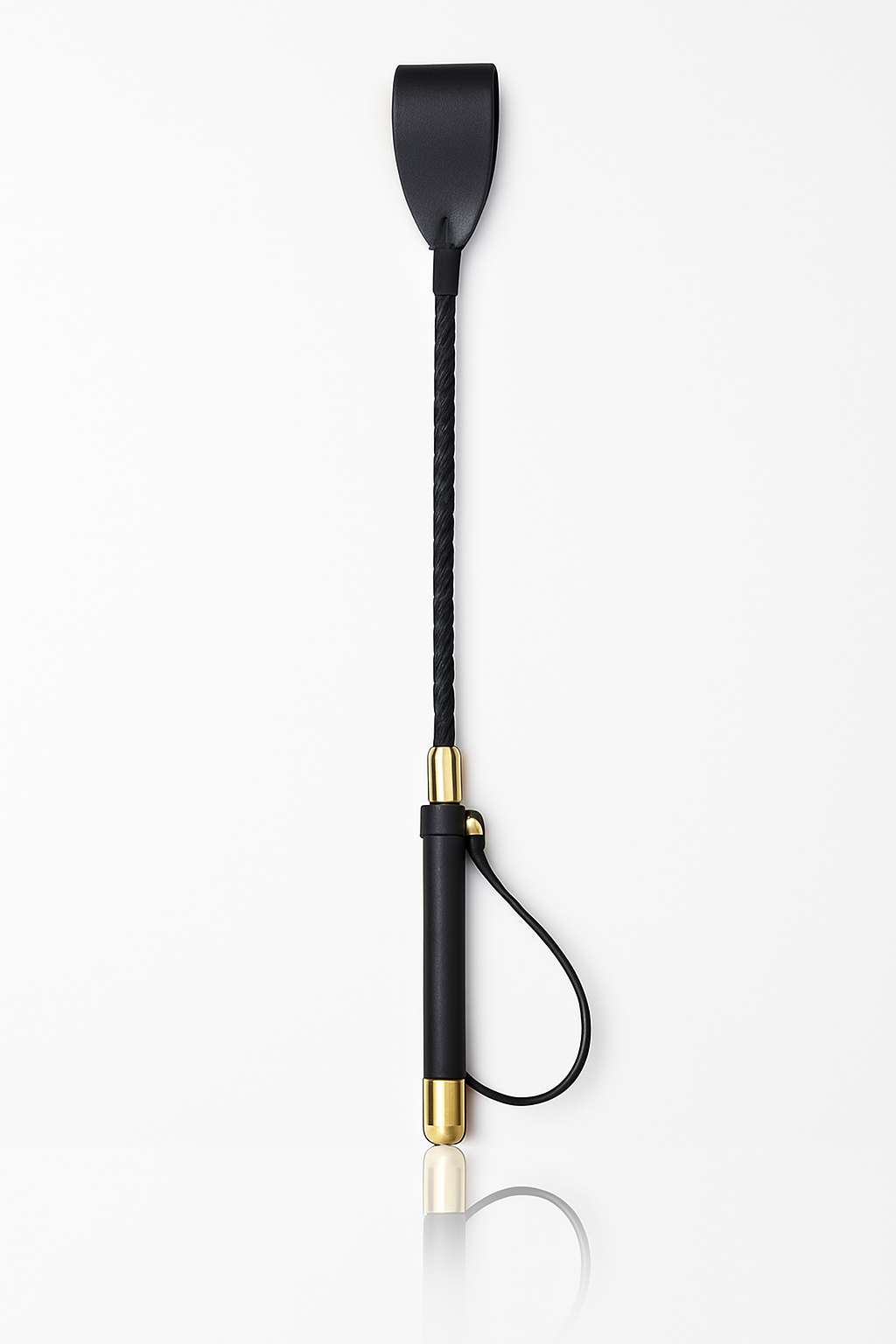 The crop delivers precision and authority with its flexible shaft and sculpted faux leather tip, finished in gold accents for a luxe touch. Paired with a 60cm soft-tail flogger designed for sensation play, this set empowers you to explore both dominance and surrender in a safe, seductive way.