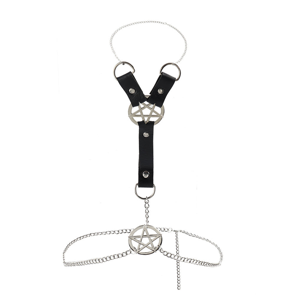 Starstruck Leather Body Chain Harness – Five-Point Star Design | No Limits Collection