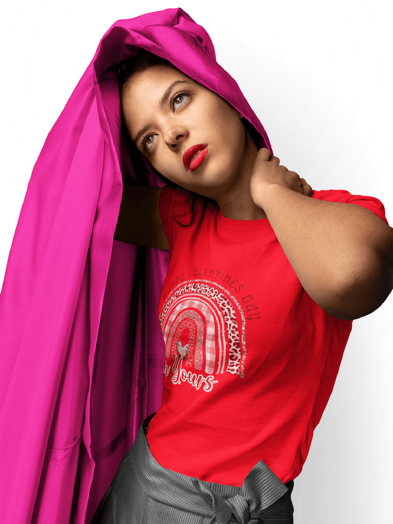Pro Tip! Layer Magic: Layering adds warmth and dimension to your outfit. Throw on a denim jacket, a leather jacket, or a long cardigan over your tee for a stylish and versatile look. You can also layer a tank top or a long-sleeved tee underneath your Valentine's Day tee for a unique and personalized effect.