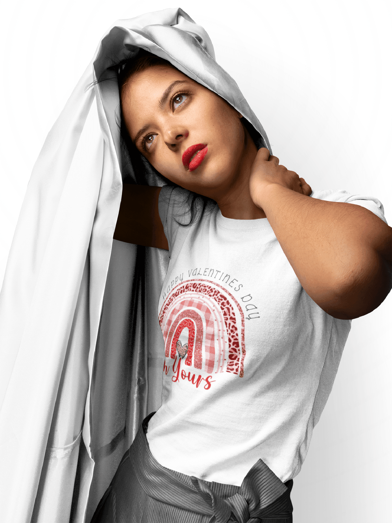 Wear your Valentine's Day tee over a simple slip dress in a contrasting color. This unexpected combination creates a playfully flirty look with a touch of romantic mystery.