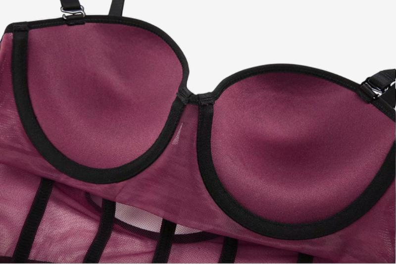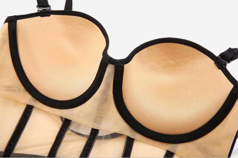 Why it works: the structured vertical lines elongate the torso and offer a corset-like illusion, making it a strong base for both sensual and formal stylings.
